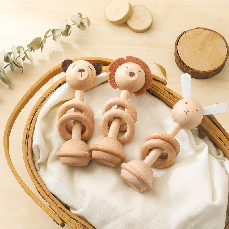 🐾 Animales Encantadores: Con divertidos diseños de oso, león y conejo, estos cascabeles no solo entretienen a los bebés, sino que también les presentan atractivas figuras animales para estimular su curiosidad y reconocimiento visual.